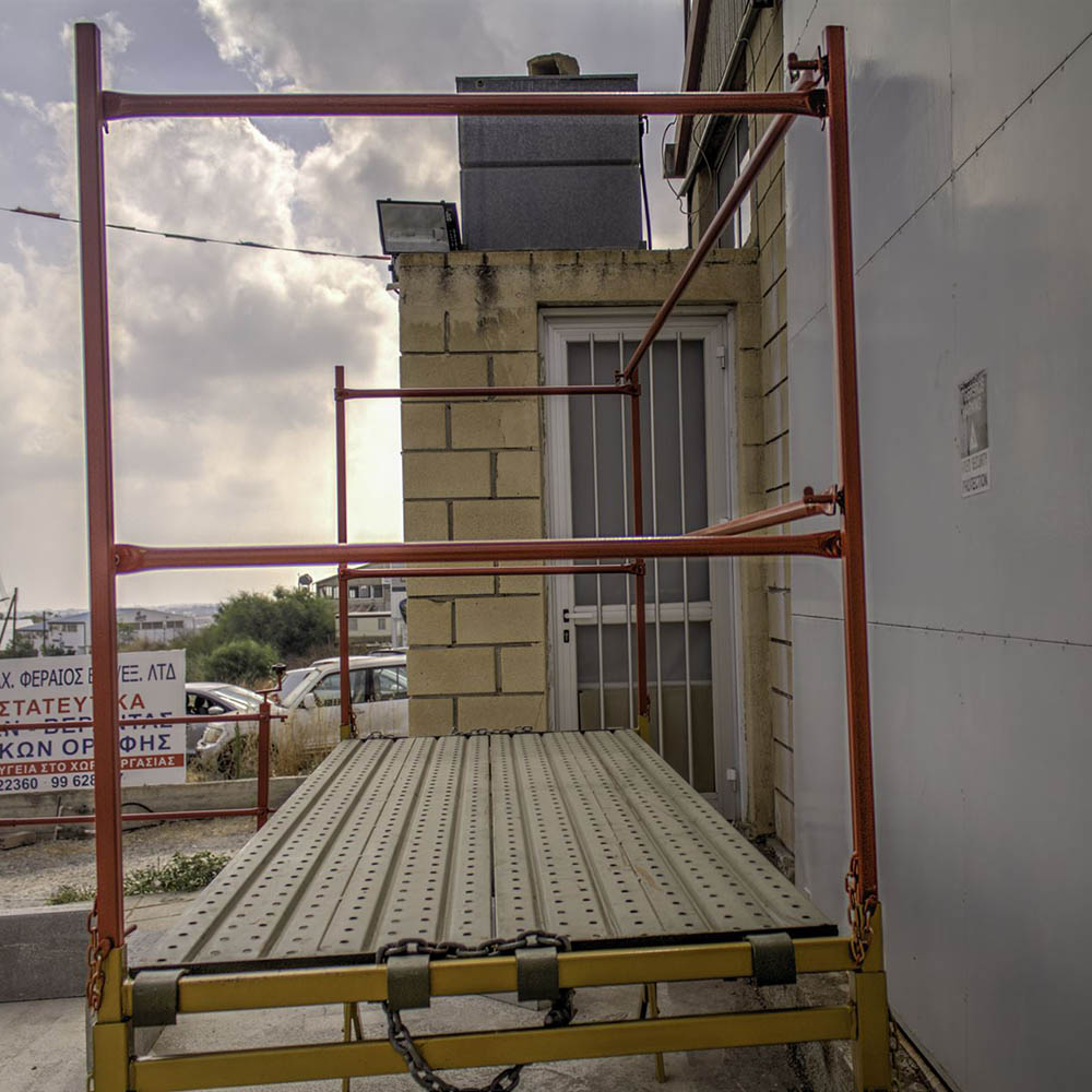 The Protective Railings for the mini scaffolding are made of iron, easy to carry, fast to adjust and easy to handle.